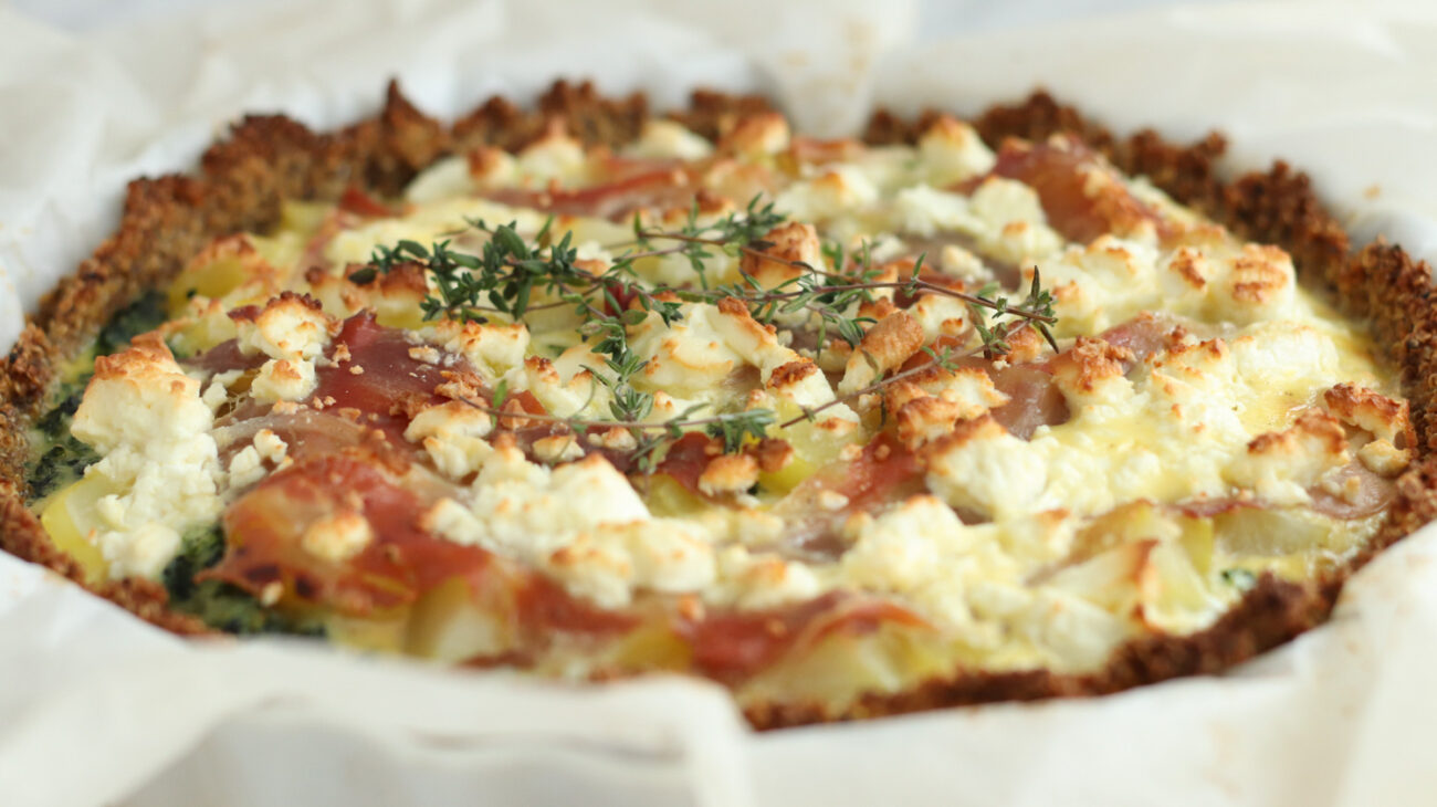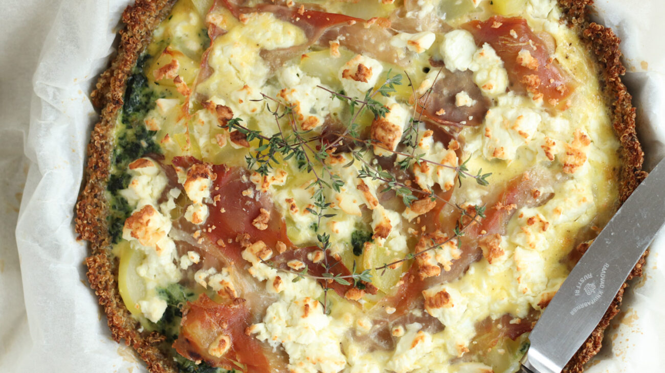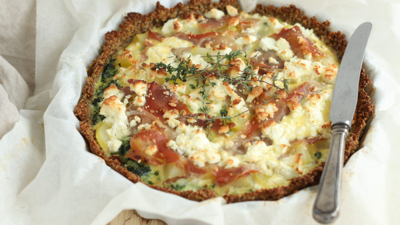 Quinoatærte med kartoffel og parmaskinke